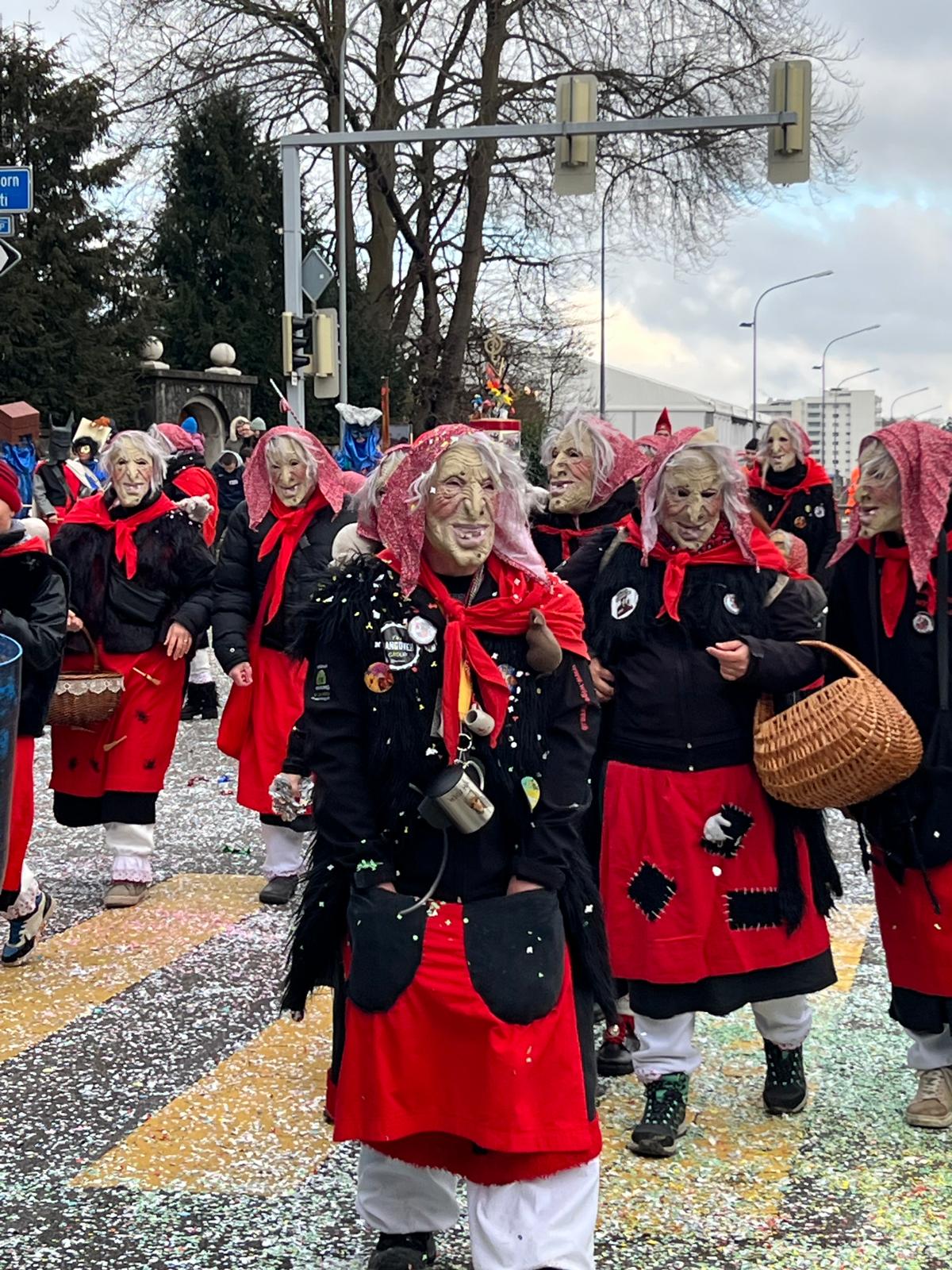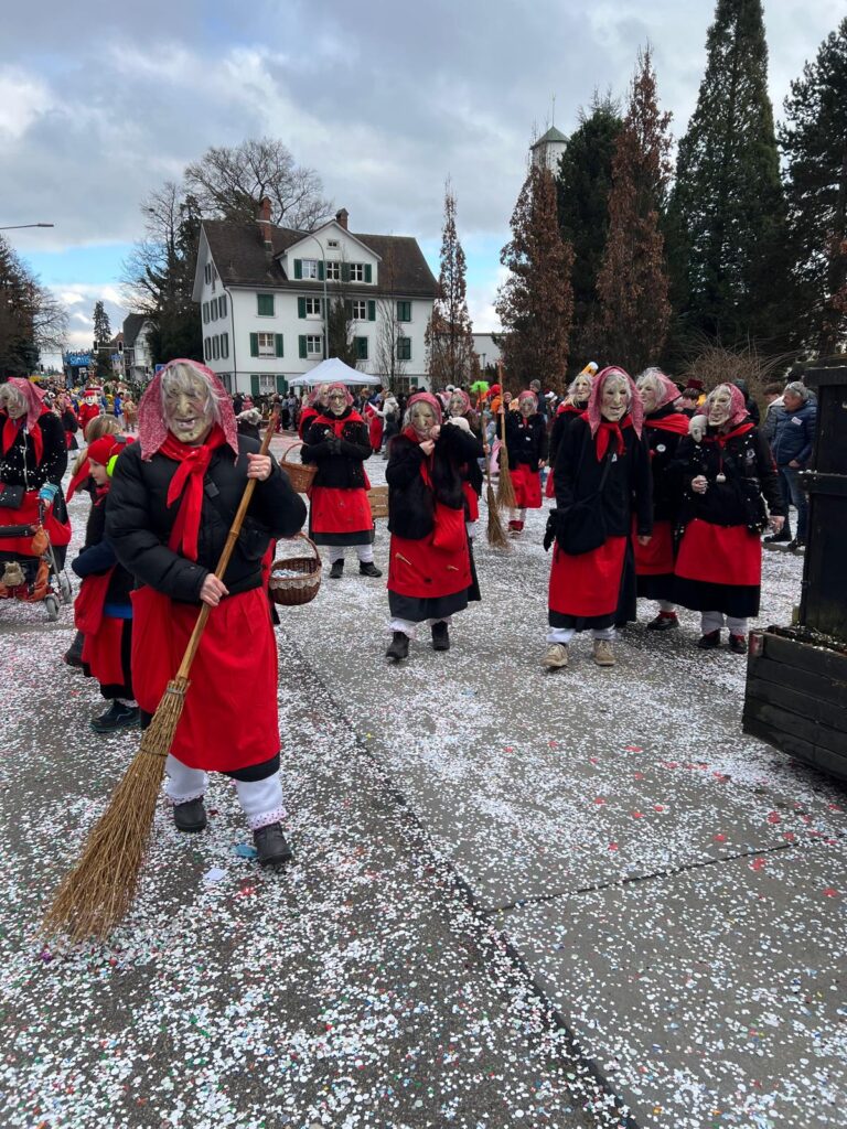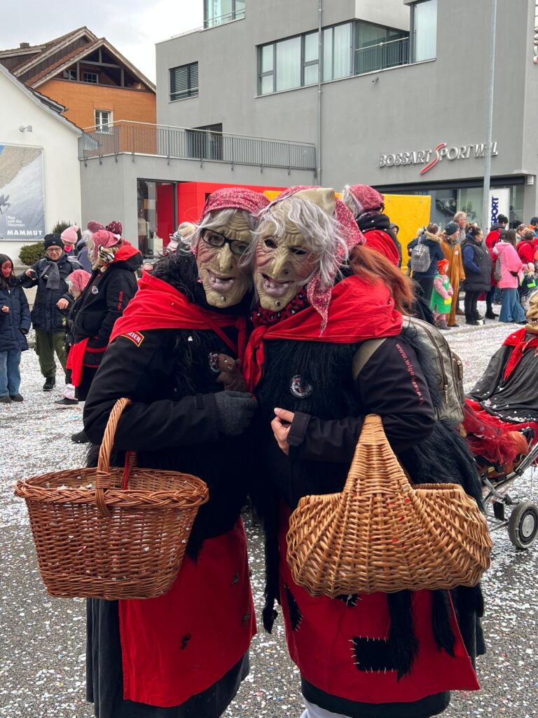 Am Sonntag vor dem Mittag hiess es für uns: Ab nach Wil! Seit vielen Jahren waren wir nicht mehr am Fasnachtsumzug dort – entsprechend gross war die Spannung. Das Wetter zeigte sich gnädig: leicht bewölkt, aber nach dem Schneefall vom Vortag immer noch ordentlich kalt. Also perfekt für echte Hexen.